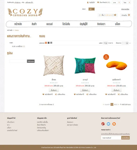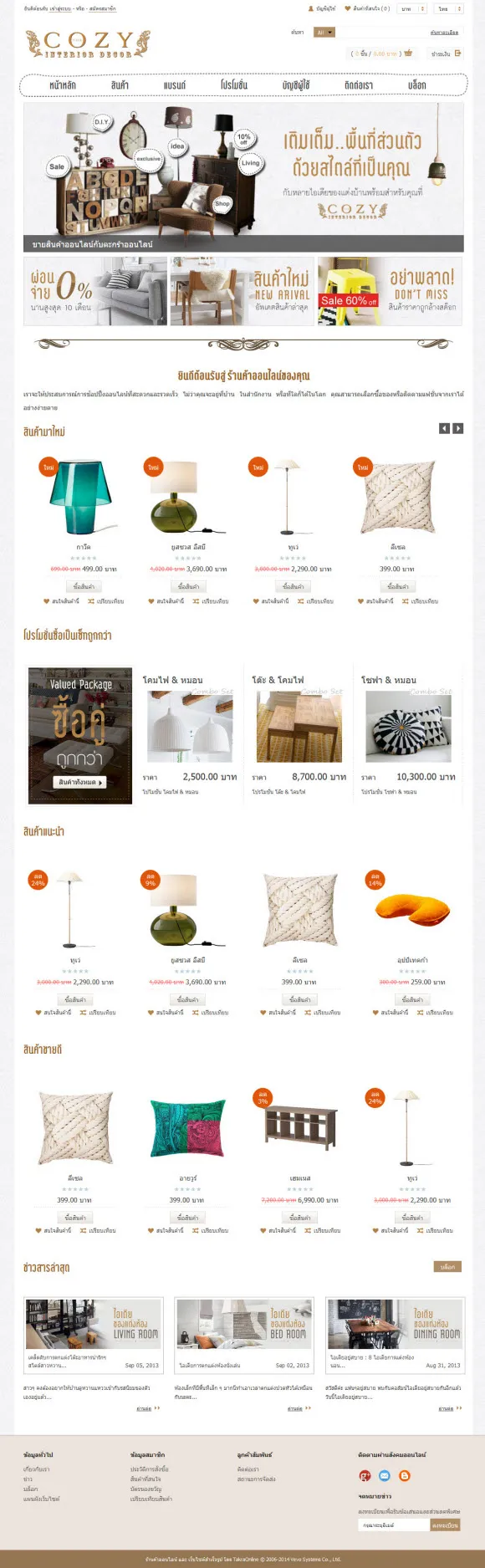 Cozy ให้ความรู้สึกอบอุ่นเหมือนได้นั่งอยู่ในห้องนั่งเล่น Cozy เหมาะกับร้านค้าออนไลน์ที่ขายสินค้าประเภท เฟอร์นิเจอร์ เครื่องนอน และของแต่งบ้าน
