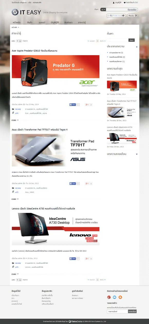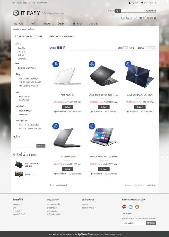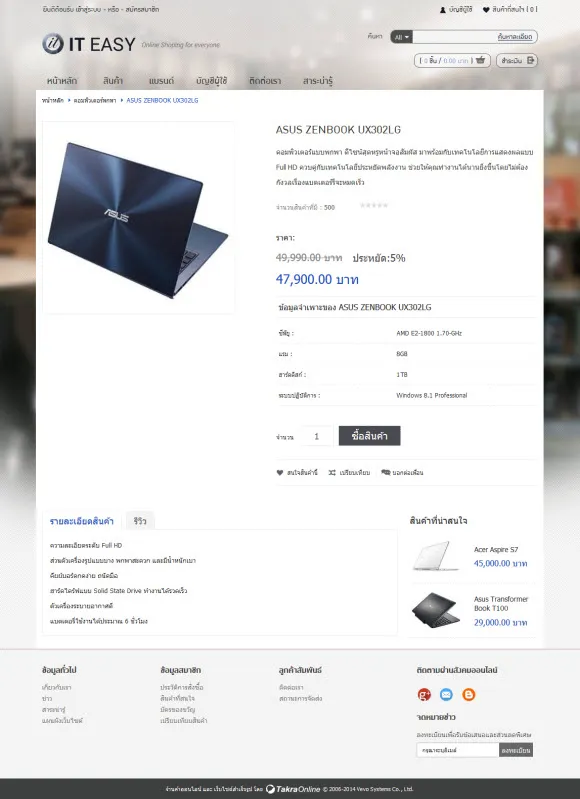 รูปแบบร้านค้า Exceptional เน้นความมีเอกลักษณ์และความทันสมัย สื่อให้เห็นถึงความโดดเด่นในยุคดิจิตอล พื้นหลังสีขาวที่ดูเรียบง่ายผสานกับสีน้ำเงินอมเทา ส่งให้ร้านค้าออนไลน์ของคุณดูกลมกลืนกับยุคสมัยใหม่แห่งเทคโนโลยี Exceptional เหมาะกับร้านค้าออนไลน์ที่ขายสินค้าประเภท โน้ตบุ๊ค คอมพิวเตอร์ แท็บเล็ต มือถือและสินค้าอิเลคทรอนิกส์ต่างๆ