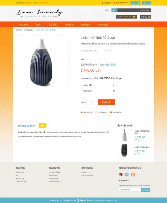 รูปแบบร้านค้า Passion ให้คุณสัมผัสกับสีสันสไตล์ใหม่ ด้วยสีขาว-ส้ม-เหลืองตัดสลับกันอย่างกลมกลืน ส่งให้ร้านค้าออนไลน์ของคุณดูเด่นกว่าใคร Passion เหมาะสำหรับร้านค้าออนไลน์ที่ขายสินค้าประเภท เซรามิค ของตั้งโชว์และของแต่งบ้าน