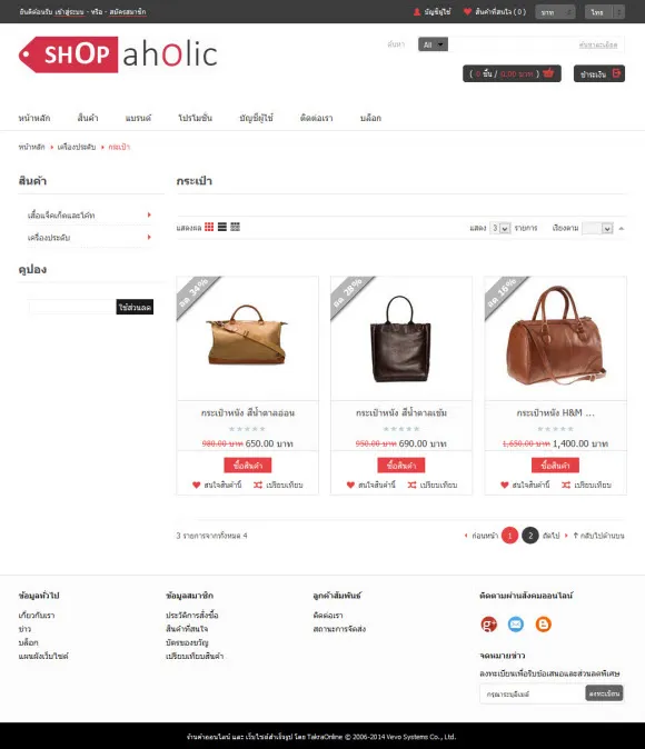 ก้าวสู่ความโมเดิร์นไปพร้อมกับรูปแบบร้านค้า “Sassy” ขาว-ดำ-แดง สามส่วนผสมแห่งสีสันที่รวมเข้าด้วยกันเป็นอย่างดี ส่งให้ร้านค้าออนไลน์ของคุณดูเก๋ไก๋ ทันสมัย ไม่ซ้ำใคร