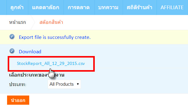 คุณสามารถดาวน์โหลดไฟล์ได้โดยการคลิกที่ชื่อไฟล์ ใต้คำว่า Download เพียงเท่านี้คุณก็สามารถมีไฟล์เพื่อดูรายงานสต๊อกสินค้า