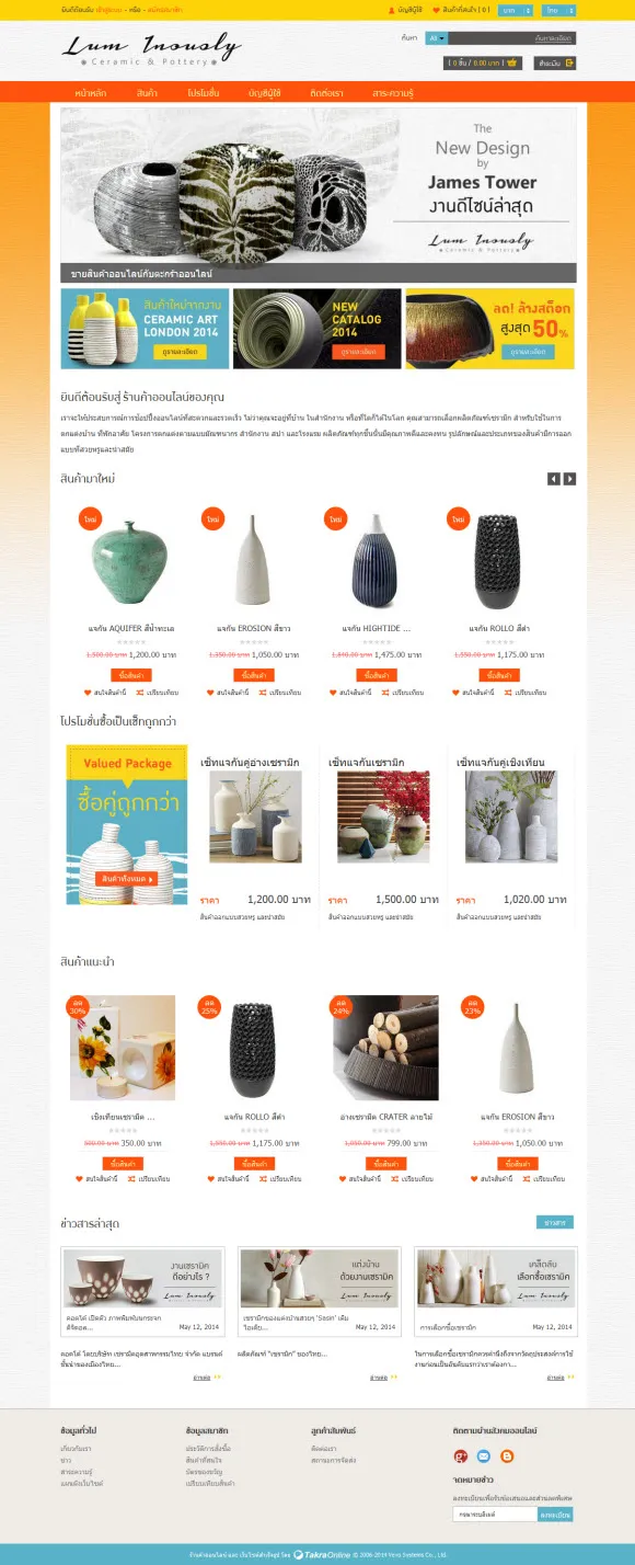 รูปแบบร้านค้า Passion ให้คุณสัมผัสกับสีสันสไตล์ใหม่ ด้วยสีขาว-ส้ม-เหลืองตัดสลับกันอย่างกลมกลืน ส่งให้ร้านค้าออนไลน์ของคุณดูเด่นกว่าใคร Passion เหมาะสำหรับร้านค้าออนไลน์ที่ขายสินค้าประเภท เซรามิค ของตั้งโชว์และของแต่งบ้าน